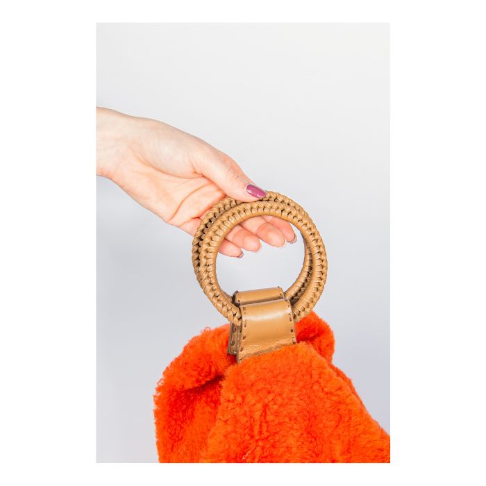 Borsa Shearling Natural con tracolla Catena Dorata, Bracciali pelle intrecciata . Colore Arancione